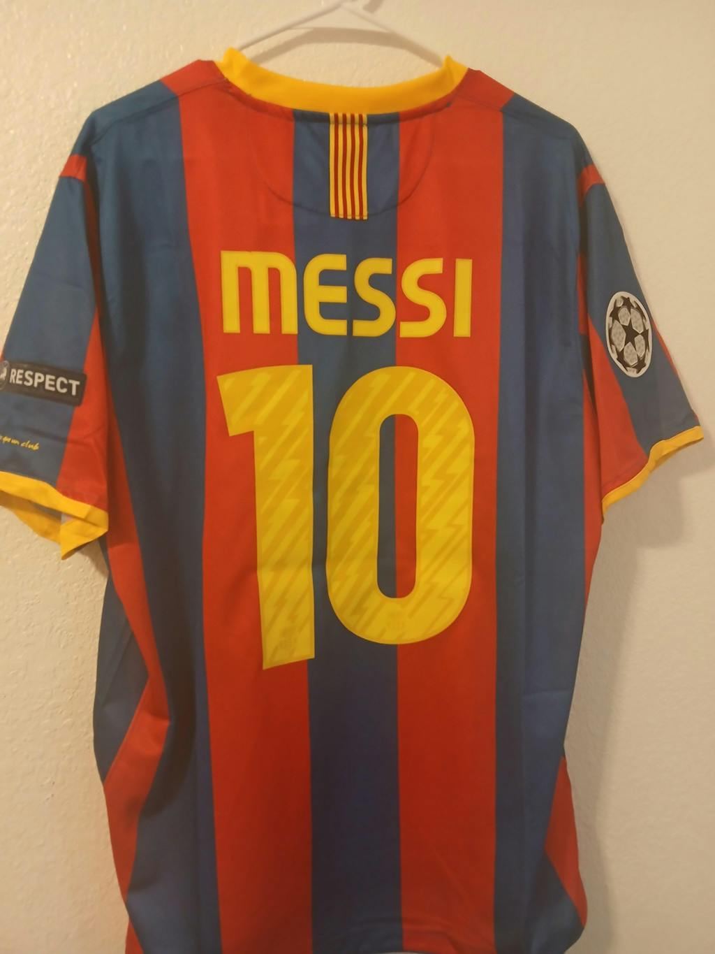 Own a piece of football perfection with this FC Barcelona 2010-2011 home jersey, commemorating their masterful victory in the 2011 UEFA Champions League Final at Wembley. This iconic shirt features the legendary Lionel Messi and his #10 on the back.
