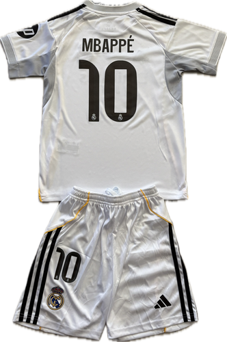 Mbappé #10 Real Madrid 2025-26 Youth Kids Home Kit (Jersey + Shorts) Adidas Champions Patch