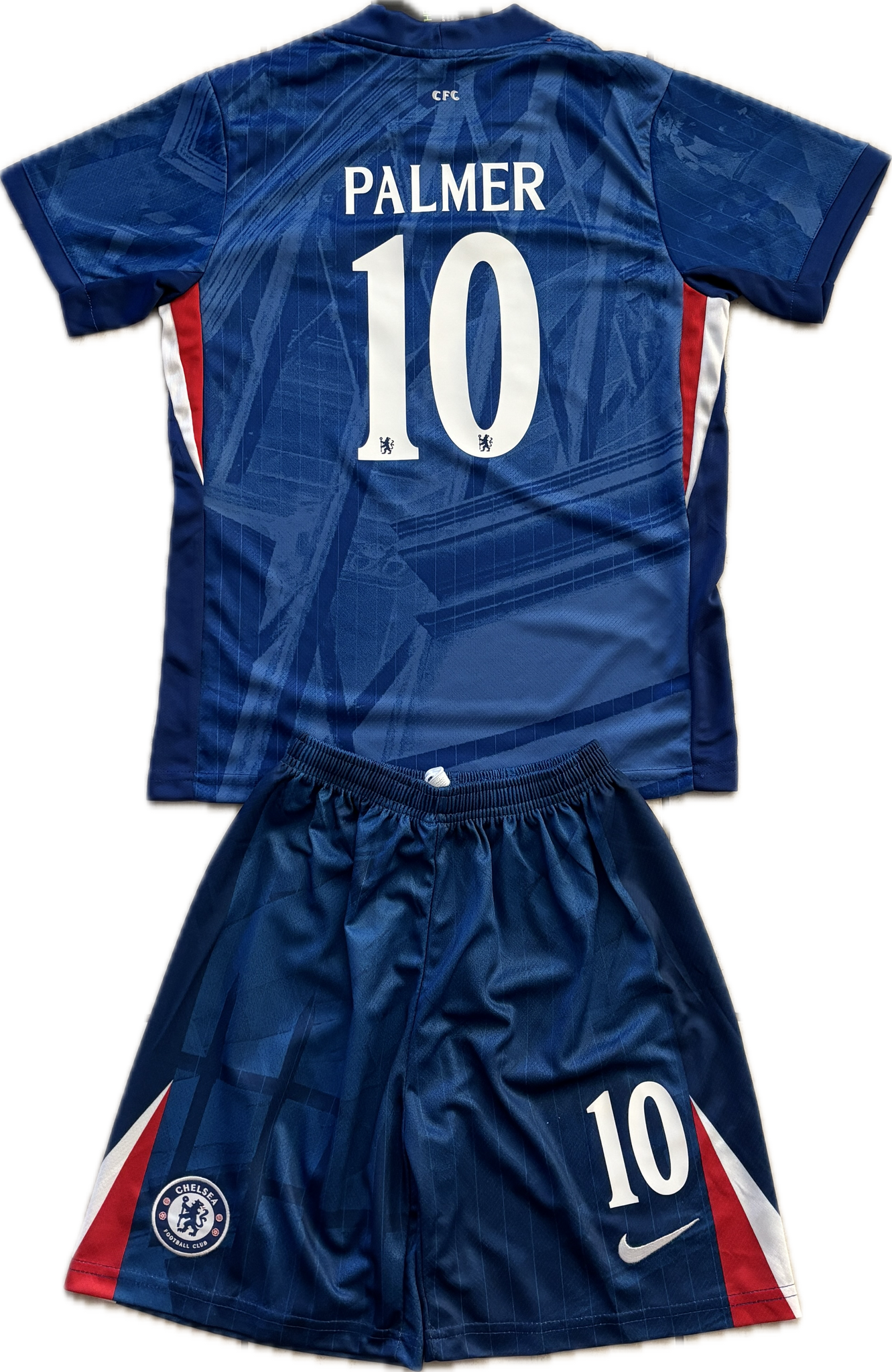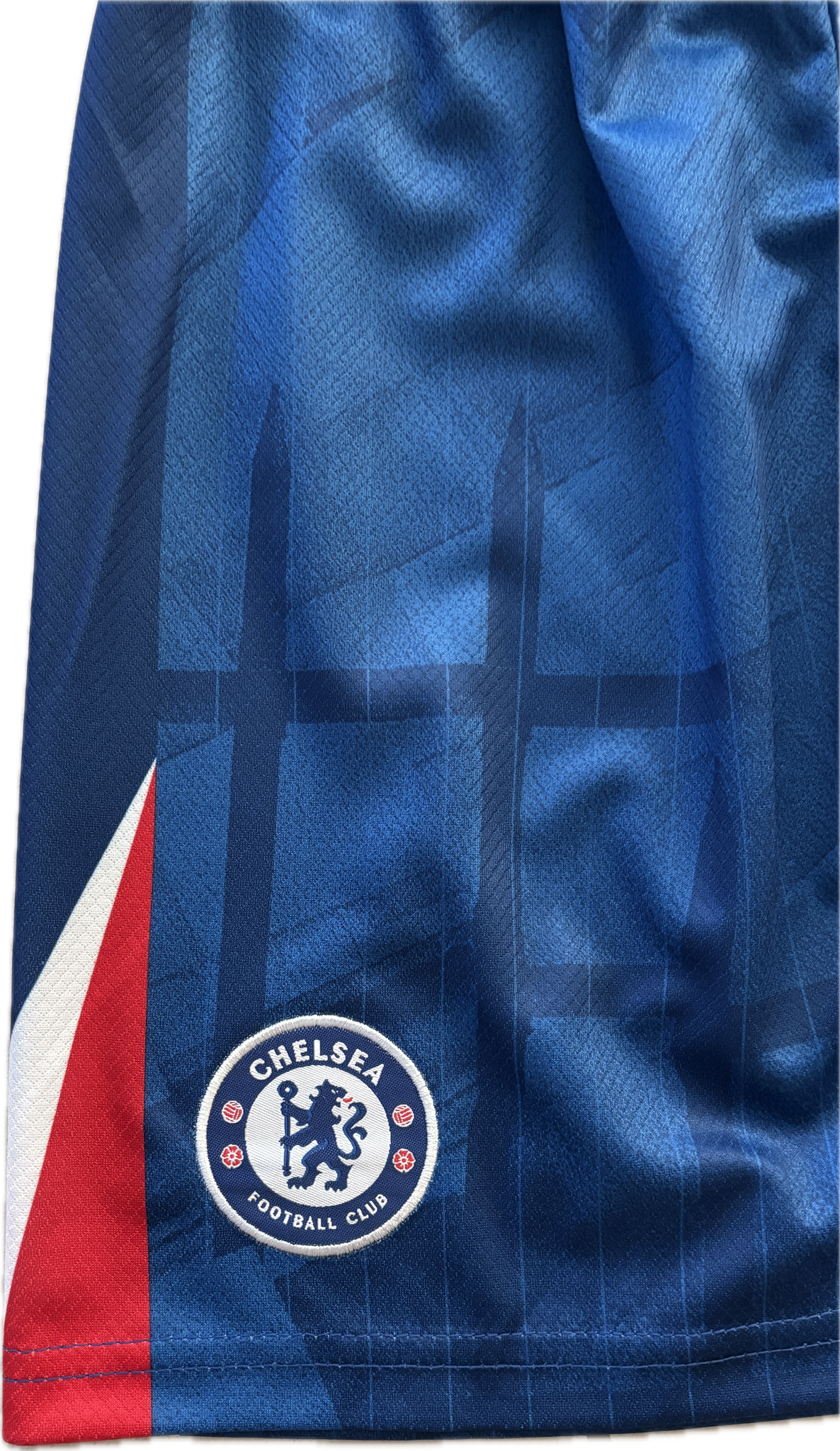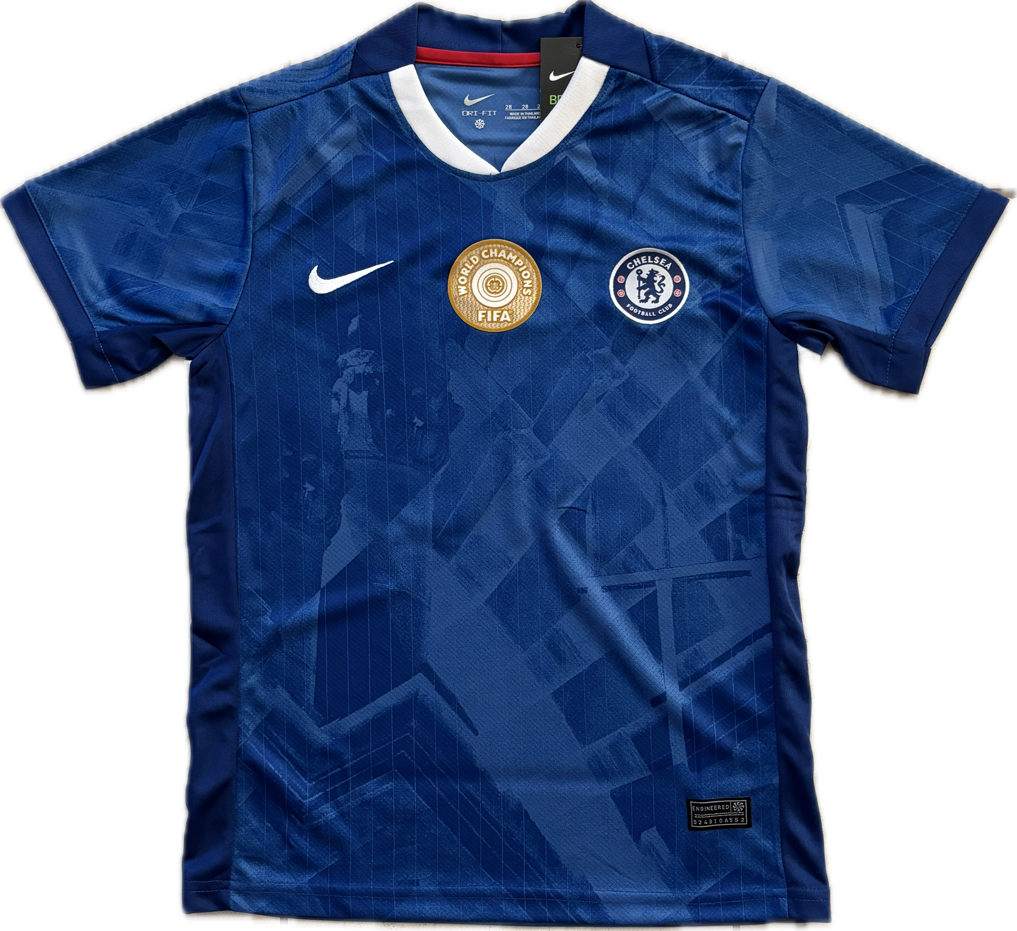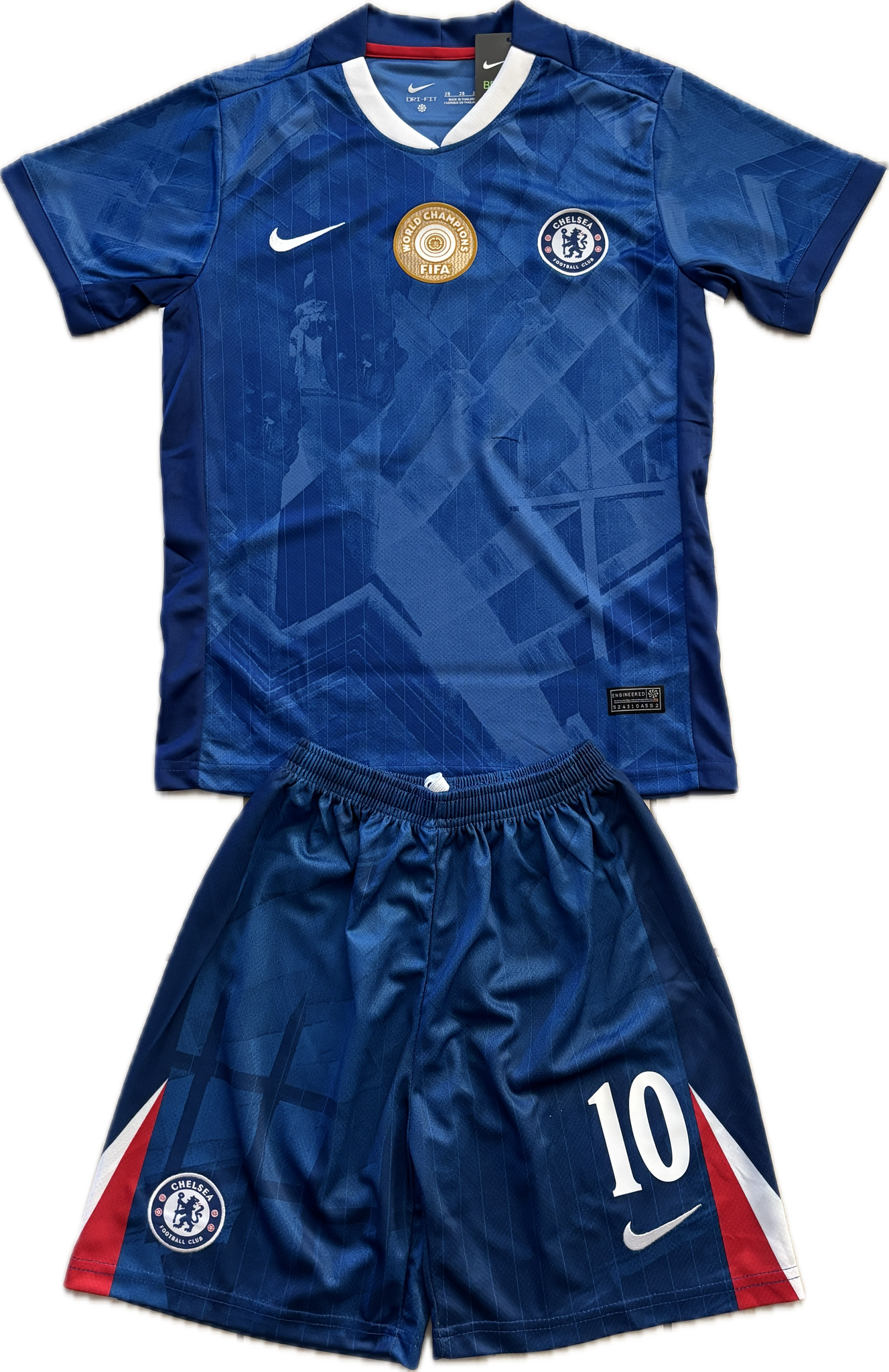 Elevate your young Chelsea fan’s game with the 2025/26 Home Kit Kids Youth featuring Cole Palmer’s name and number 10 on both the jersey and shorts. This Nike Dri-FIT kids soccer set includes a vibrant blue jersey with geometric patterns inspired by London’s skyline and matching shorts, designed for comfort and style. Crafted from breathable, moisture-wicking fabric to keep active kids cool during play or match days, it boasts premium patches like the Premier League lion, No Room for Racism badge, FIFA Club World Cup 2025 USA emblem, and World Champions FIFA badge, celebrating Chelsea’s global success.