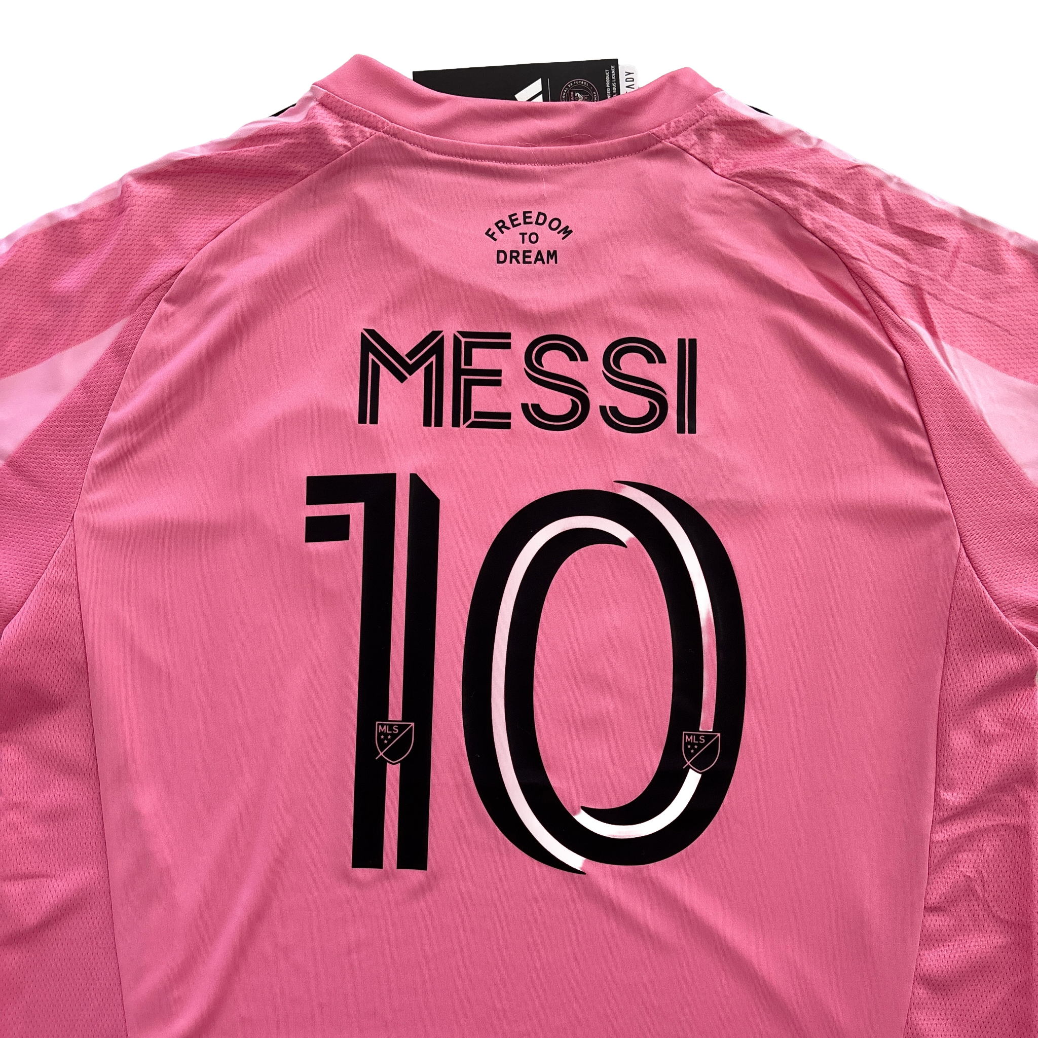 Built for comfort, this jersey uses adidas AEROREADY moisture-wicking technology to keep you dry and cool. It includes the sewn-on Inter Miami crest, Messi’s name and number 10, and the "Freedom to Dream" motto on the back collar. Made with 100% recycled polyester for a premium, sustainable feel.