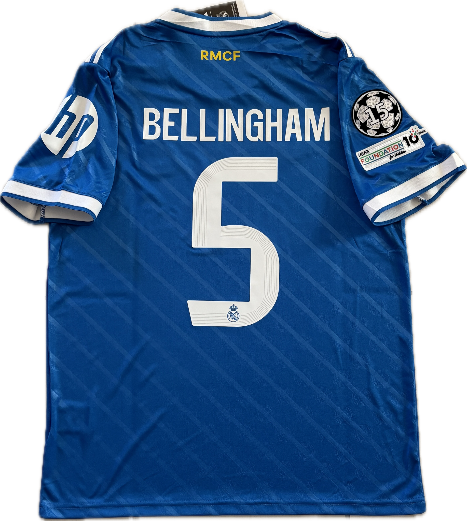 This jersey is fully decorated to honor their status as champions, featuring the rare, gold FIFA Intercontinental Cup Champions patch on the chest. The sleeves are equipped with the updated 15-time Champions League winners' Starball patch and the UEFA Foundation patch, making this the ultimate symbol of Real Madrid's global and European dominance.